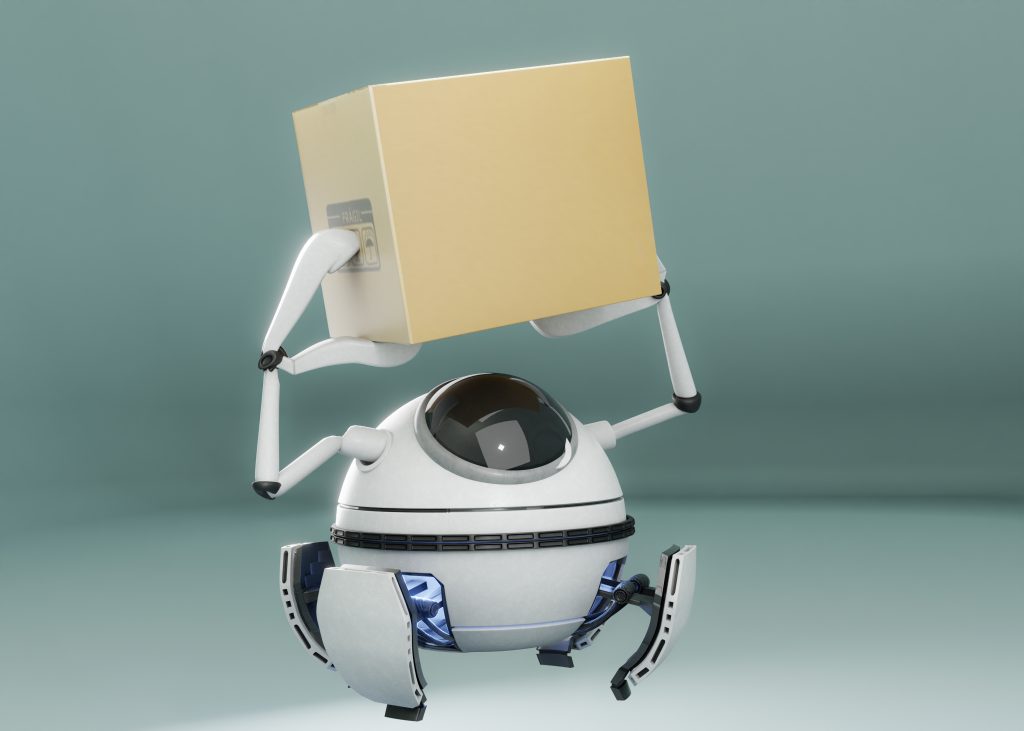 3D render of a Robot with shipping boxes
