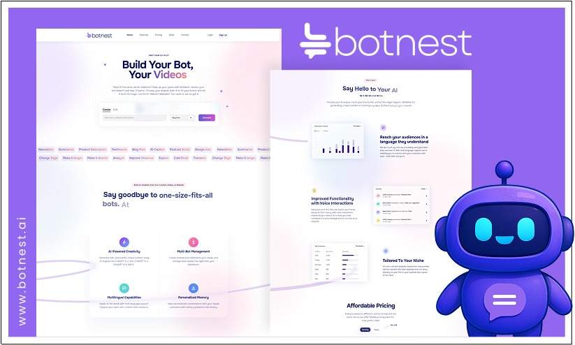 Power your platform with BotNest AI — an advanced chatbot solution built to understand, respond, and evolve with your business needs. Whether it's answering FAQs, guiding users, or automating support, BotNest ensures your customers get instant, accurate, and personalised assistance — every time.